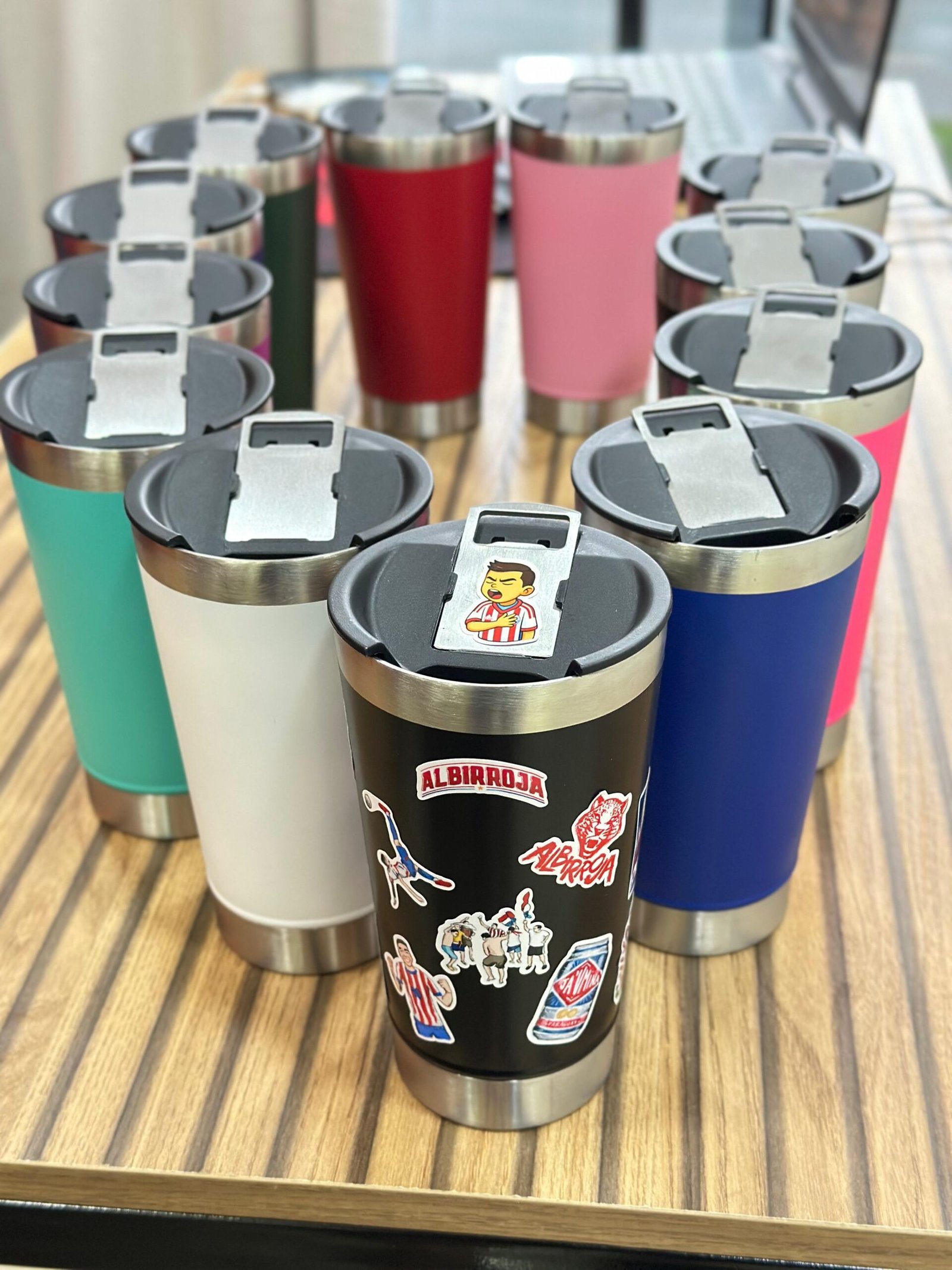 Vaso térmico con abridor + stickers albirrojo